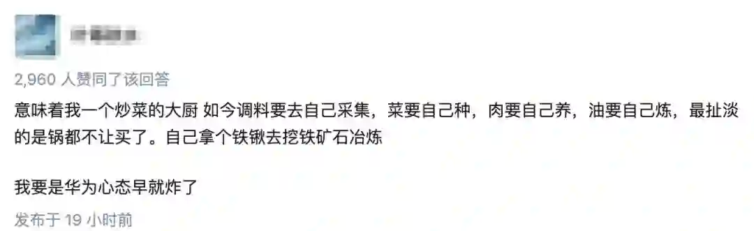 除此之外,对华为的影响已经毋庸赘述,有网友用了一个比喻: