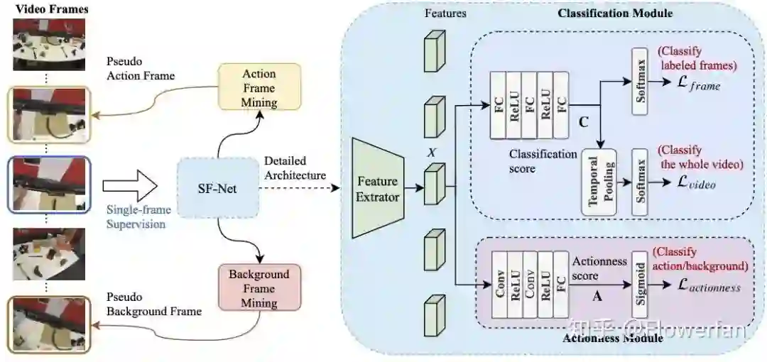 基于视频的的单帧标注,我们设计的SF-Net模型框架长这样: