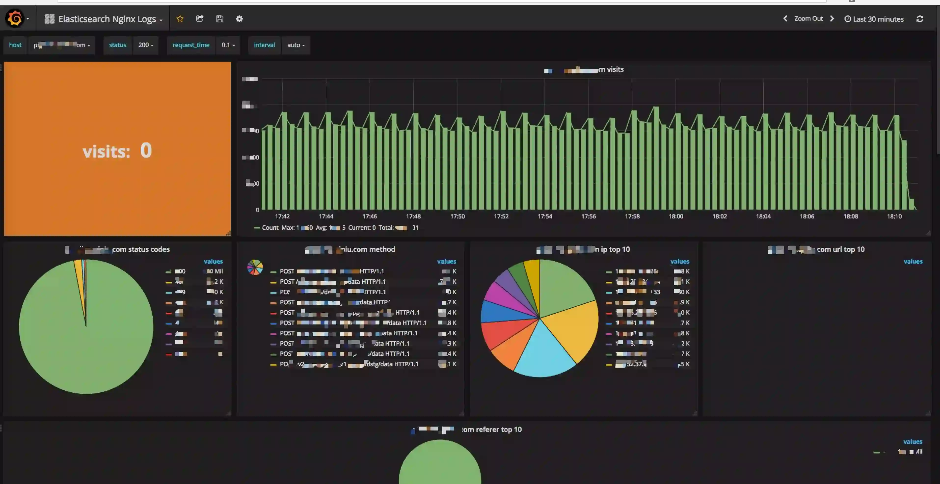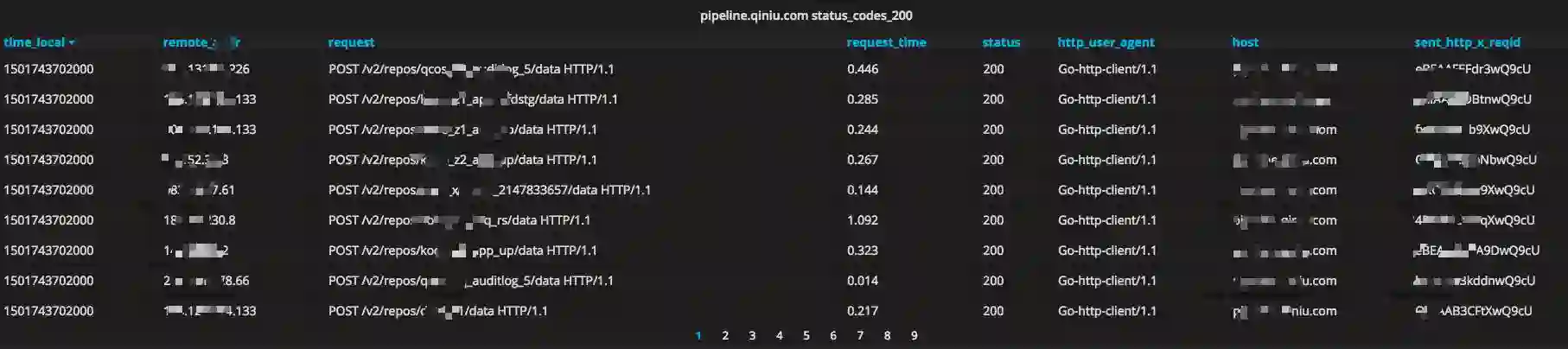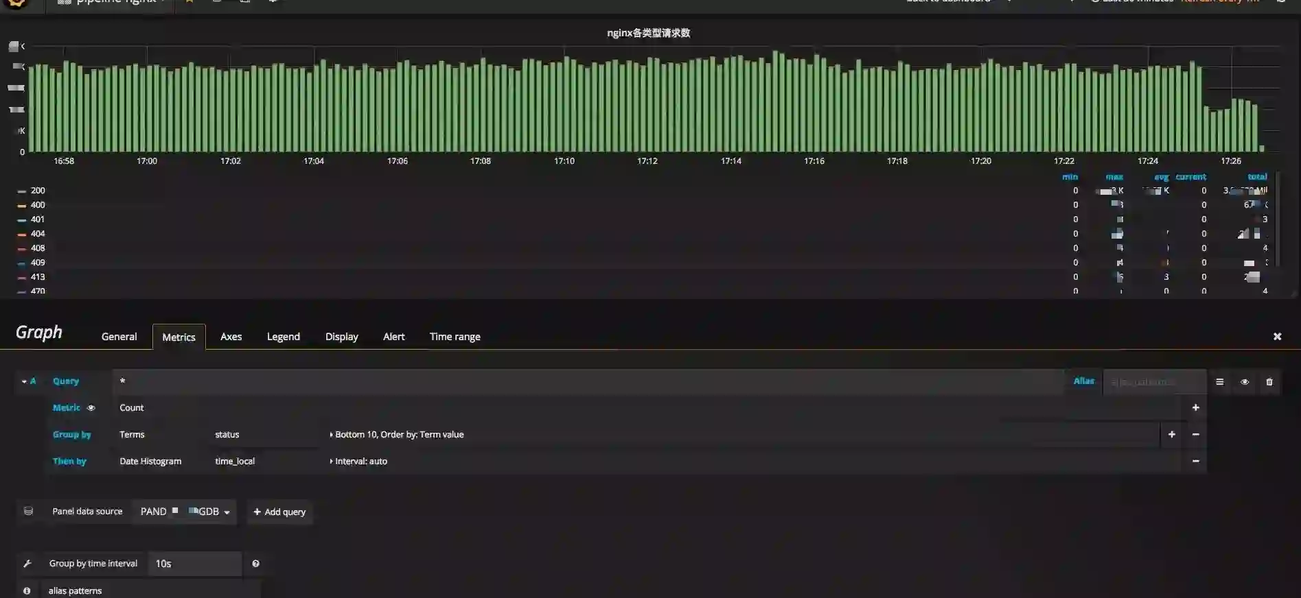 可见,仅仅几步简单的操作,你就借助 Pandora 实现了海量日志的实时监控,通过 nginx 日志完整而详尽地了解业务的流量入口的各类情况。