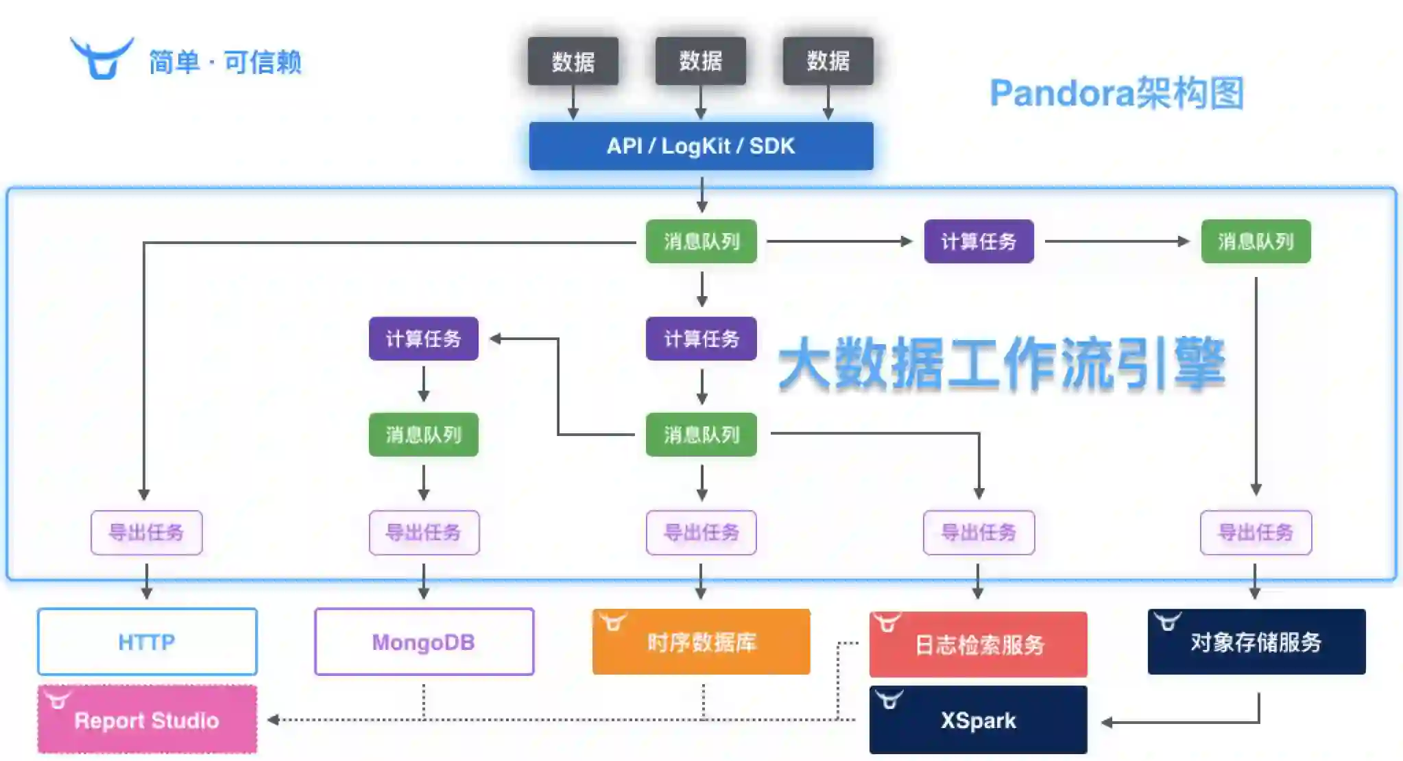 解决了数据的导出问题,基本上绝大部分数据流转的问题也都解决了。下面开始关注 Pandora 下游的一系列服务。