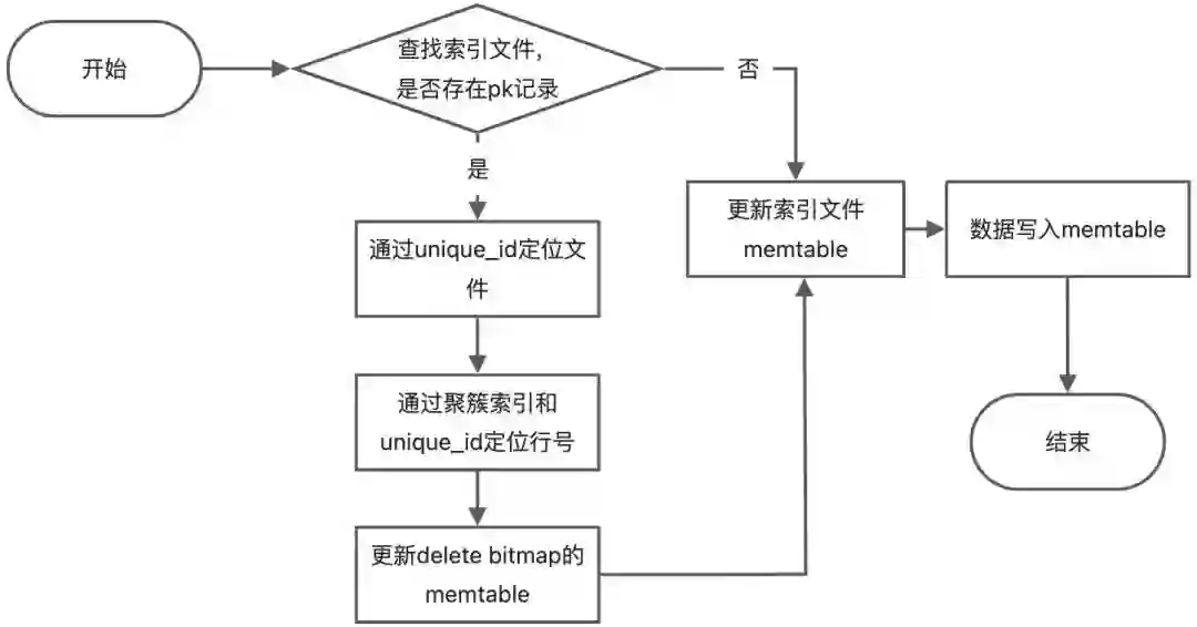 如果主键发生了冲突,那么一次Upsert的开销=一次索引查询 + 一次文件及行号定位 +三次内存写入操作。