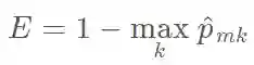 不纯性度量 Q_m 一个比较自然的方法是分类误差率。分类误差率描述的是训练观察值在某个区域内不属于最常见类别的概率: