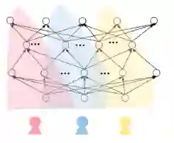 这里,私有模块是用来捕获每个任务的唯一性的,它应该仅仅使用单一任务的数据数据进行训练。然而,在低资源场景下,本文并没有足够的训练数据来训练这部分。幸运的是,所有私有模块都是从相同的MLP结构演变而来的,相似的任务自然会有重叠的网络结构,即修剪后的剩余边缘重叠,而不相似的任务没有重叠。如图所示:
