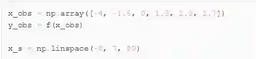 对于这个介绍,我们将考虑一个没有噪声的简单回归模型设置(但GP可以扩展到多维和噪声数据):