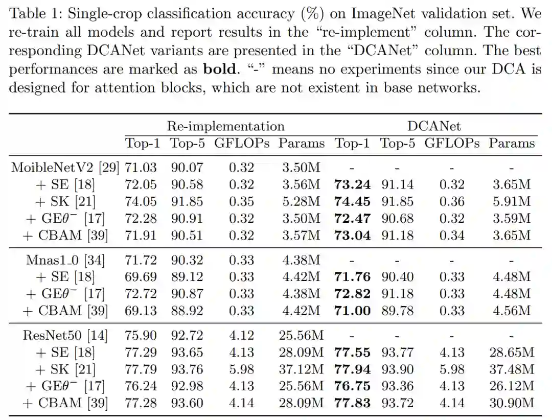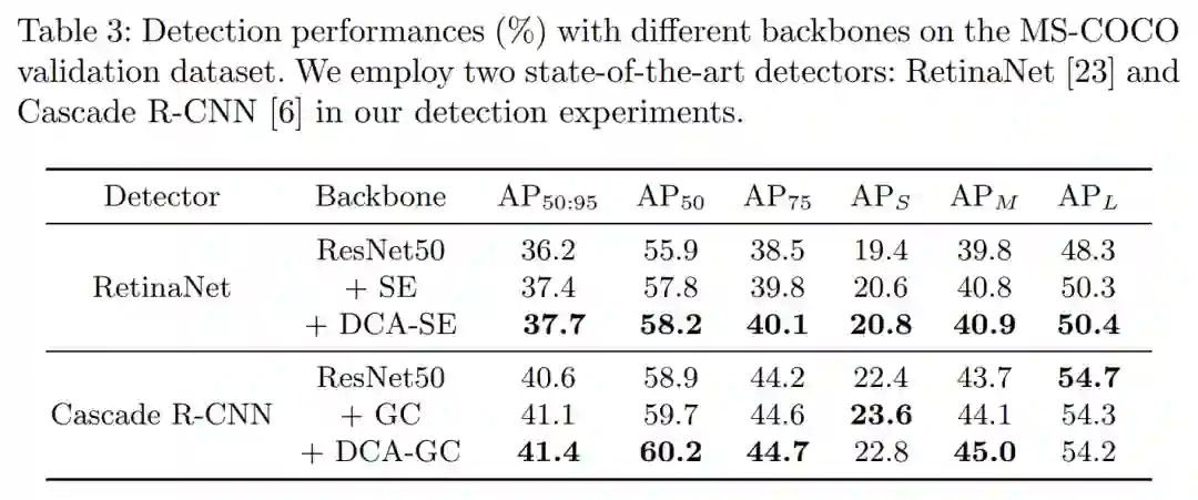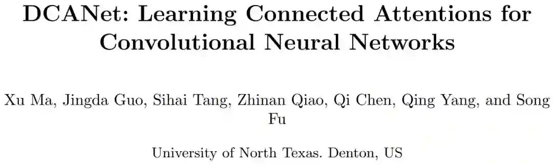 在ImageNet和MS COCO基准测试上的实验结果表明,DCANet在所有测试用例中以最小的额外计算开销始终胜过最新的注意力模块。所有代码和模型均公开提供。