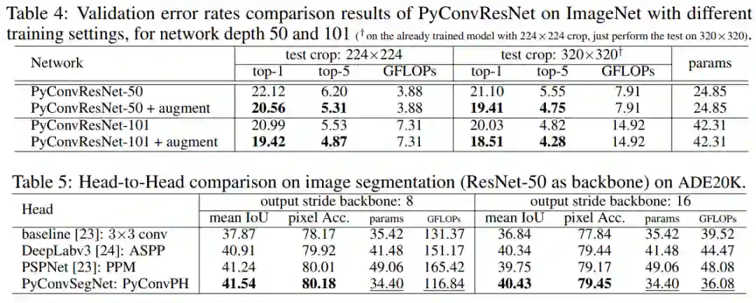 PyConv 在图像分类、语义分割等任务上的性能表现: