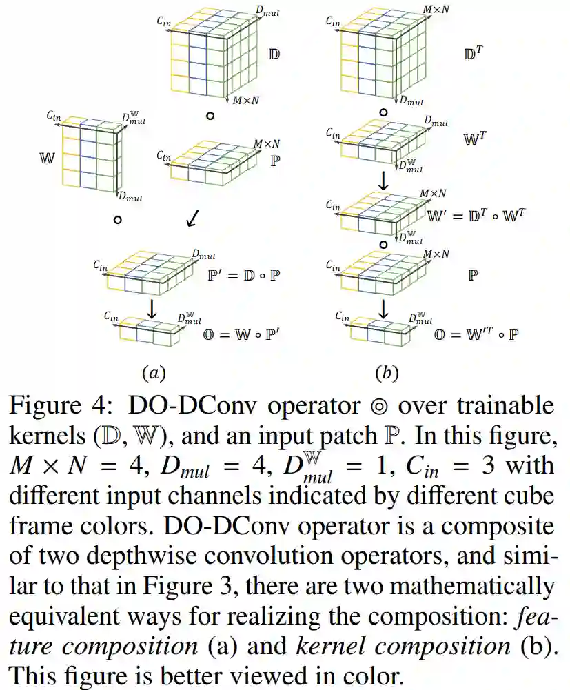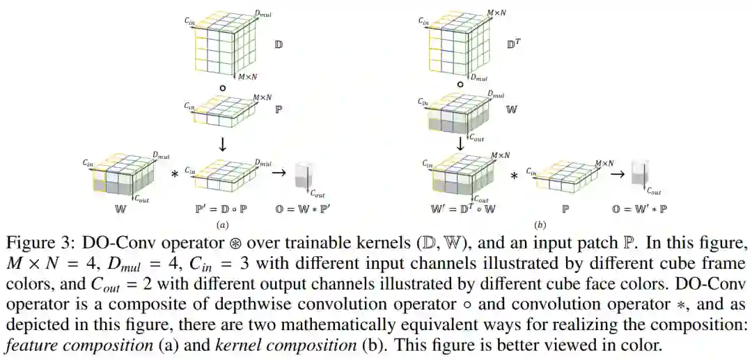 卷积层是卷积神经网络(CNN)的核心构建模块。在本文中,我们提出通过附加的depthwise卷积来增强卷积层,其中每个输入通道都使用不同的2D kernel进行卷积。两个卷积的组成构成了over-parameterization,因为它增加了可学习的参数,而生成的线性运算可以由单个卷积层表示。我们将此depthwise over-parameterized卷积层称为DO-Conv。我们通过大量实验表明,仅用DO-Conv层替换常规卷积层就可以提高CNN在许多经典视觉任务(例如图像分类,检测和分割)上的性能。此外,在推理阶段,深度卷积被折叠为常规卷积,从而使计算量精确地等于卷积层的计算量,而没有over-parameterization。由于DO-Conv引入了性能提升,而不会导致推理的计算复杂性增加,因此我们提倡将其作为传统卷积层的替代方法。