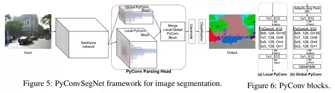 PyConv具有影响几乎所有计算机视觉任务的潜力,在这项工作中,我们针对视觉识别的四个主要任务提出了基于PyConv的不同体系结构:图像分类,视频动作分类/识别,目标检测和语义图像分割/解析。与基线相比,我们的方法显示出对所有这些核心任务的显著改进。例如,在图像识别方面,我们的50层网络在ImageNet数据集上的识别性能优于其具有152层的对应基准ResNet,同时参数减少了2.39倍,计算复杂度降低了2.52倍,层减少了3倍以上。在图像分割方面,我们新颖的框架为具有挑战性的场景解析ADE20K基准设置了新的技术。