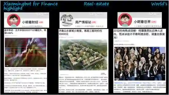 现在Xiaomingbot不仅能写体育文章,还有财经、房产等等。财经新闻有“小明看财经”这个头条号,房产是房产情报站,世界各领域热点有“小明看世界”,一系列内容都由这些头条号自动放出。
