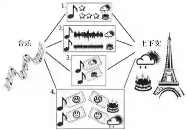 我们定义了四种不同的方法来建立音乐片段与上下文信息之间的相关度,如 ( 图1 ) 所示: