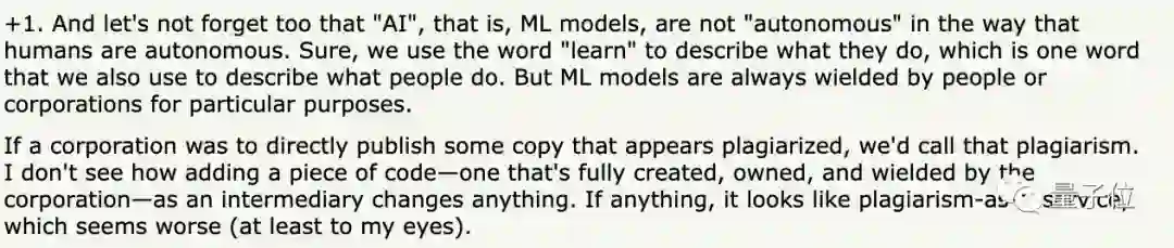 但另一方面,不只现在,其实从Copilot刚出来开始,一直就有众多质疑和反对的声音,核心都不外乎马修在前文举证的那两点。(即这个AI的训练和使用)