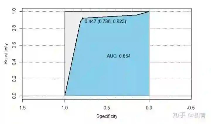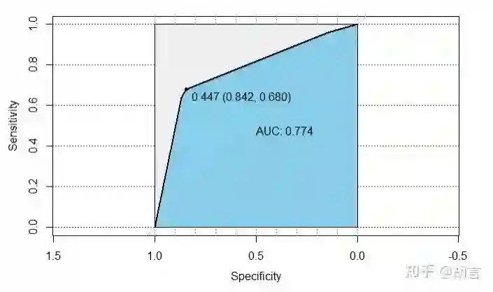 auc.polygon.col="skyblue", print.thres=TRUE)