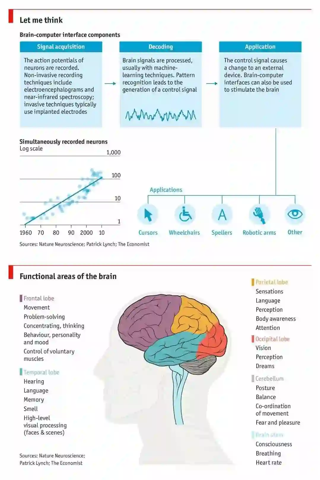 本期《经济学人》共刊发封面文章 6 篇,全部关于脑机接口技术。机器之心节选了其中三篇分享给读者,这三篇文章分别着眼于脑机接口当下的进展、从大脑中提取数据的方式、以及数据获取后的使用方式进行了解析。读罢您将清楚地了解到脑机接口技术此刻所取得的成就、已经应用的领域、遇到的困难与挑战等。