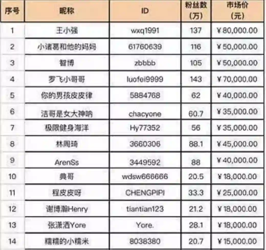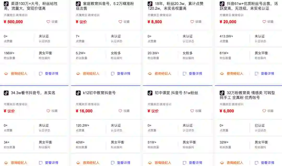 交易平台上的部分抖音号标价