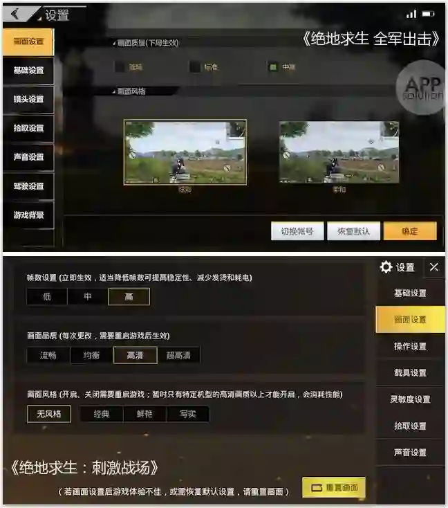 值得一提的是,两款《绝地求生》手游都提供画质和帧率的调试选项,其中《刺激战场》的帧数设置能够立即生效,而《全军出击》则需要等到下一局才能更新设置。