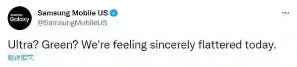 在苹果iPhone 13系列苍岭绿配色发布之后,三星美国官方账号在社交平台发声,称“我们由衷感到受宠若惊”,暗示苹果新出的绿色版本iPhone是从三星这里汲取的灵感。(快科技)