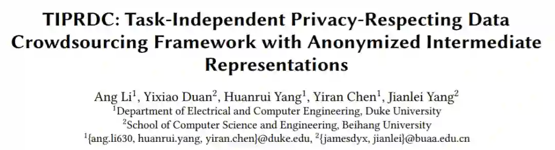获奖论文:《TIPRDC: Task-Independent Privacy-Respecting Data Crowdsourcing Framework for Deep Learning with Anonymized Intermediate Representations》