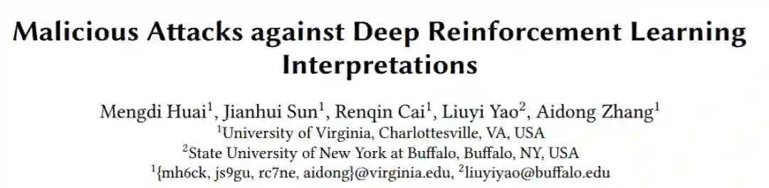来自弗吉尼亚大学的 Mengdi Huai、Jianhui Sun、Renqin Cai、Aidong Zhang 和来自纽约州立大学布法罗分校的 Liuyi Yao 获得了最佳论文奖的亚军,获奖论文是《Malicious Attacks against Deep Reinforcement Learning Interpretations》。