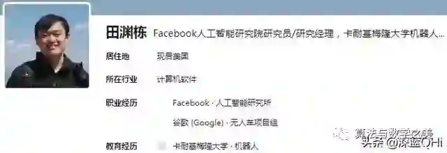 田渊栋博士目前担任Facebook人工智能研究院研究员/研究经理