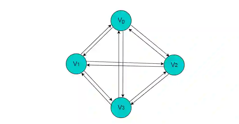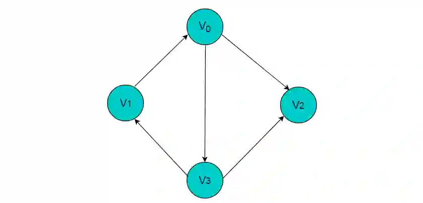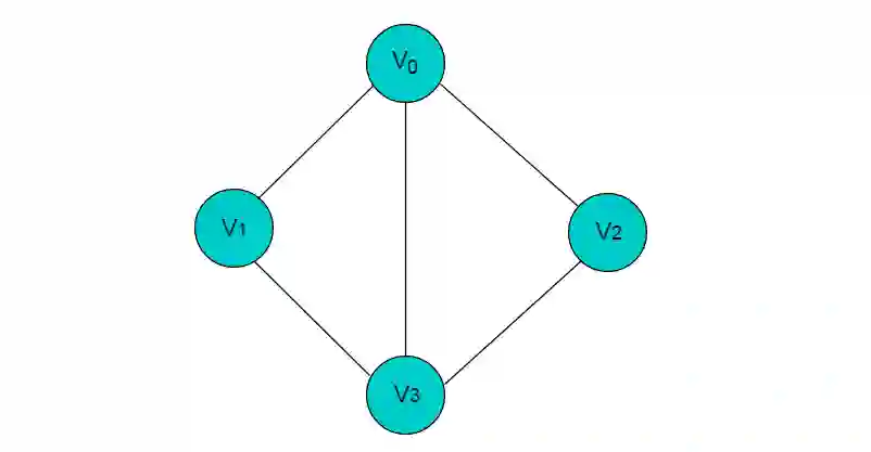 在图 2.1 中,共有 V0,V1,V2,V3 这 4 个顶点,4 个顶点之间共有 5 条边。