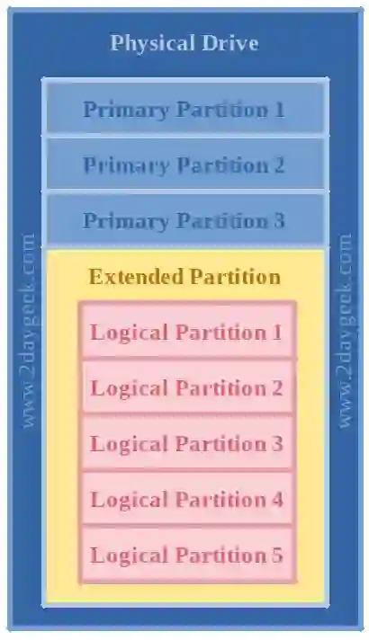 fdisk 允许我们在每块硬盘上创建最多四个主分区。它们中的其中一个可以作为扩展分区,并下设多个逻辑分区。1-4 扇区作为主分区被保留,逻辑分区从扇区 5 开始。