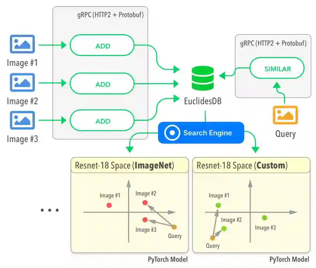 多模态机器学习特征嵌入数据库EuclidesDB最近发布了0.2.0版。EuclidesDB提供了一个后端,供查询模型特征空间中的数据。EuclidesDB使用C++编写,基于protobuf实现数据序列化,基于gRPC通讯,深度支持PyTorch,实现了Annoy、Faiss等多种索引方法。