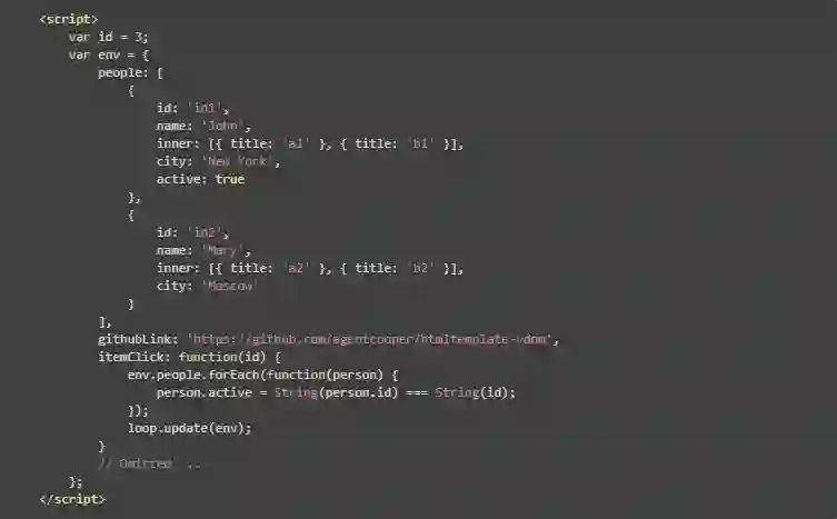 入口参数是个 Object,模板中的变量 x 是该对象的 .x 属性,例:virtual-stache-example