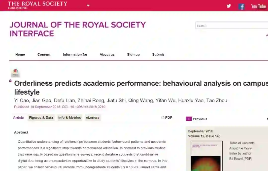 电子科技大学周涛团队的研究首次揭示校园生活的规律性和学生成绩的显著关联