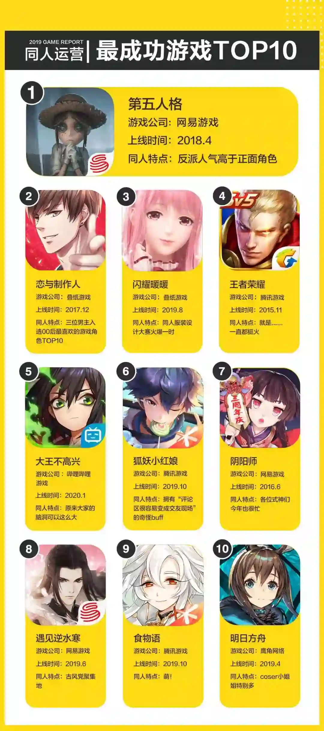 由于同人文化在00后游戏玩家中的巨大影响力,游戏企业进行同人运营活动往往会产生事半功倍的效果,以下为快看游戏与游戏合作方在同人运营中积累的一些案例。