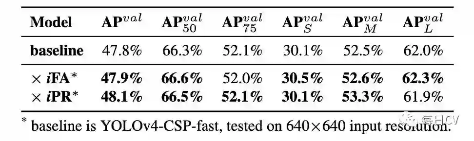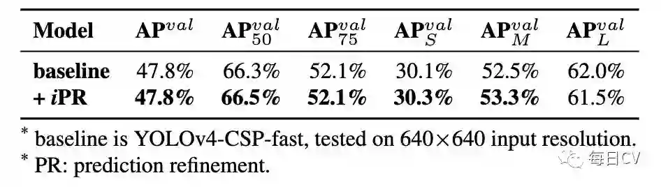 使用简单的向量隐式表征和加法算子,在YOLO的每一个输出层添加隐式知识进行预测细化,大部分指标都获得到了一定的增益,如表2所示。