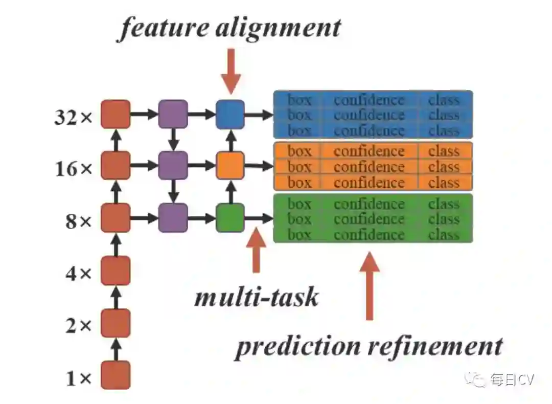 在预测细化实验中,由于concat会增加输出维度,所以只比较相加与相乘的效果,在这里相乘的效果更好。这是由于中心偏移在执行预测时使用加法解码,而锚框尺度使用乘法解码,而中心坐标是以网格为界的,影响较小,但人工设置的锚框具有较大的优化空间,因此改进更为显著。