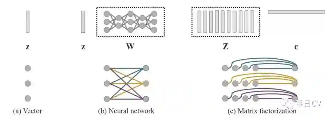 如图7(a)利用向量/矩阵/张量 直接作为隐式知识的先验,直接作为隐式表示。此时,必须假设每个维度彼此独立。