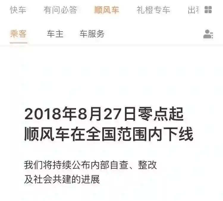 自2018年8月27日零时起,滴滴顺风车就定格在了主App一级页面正中间的位置,似乎从未缺席,却已真实离线8个月之久,没有期限,也没有任何回归计划。