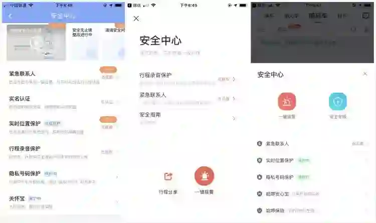看上去它们的确越来越像了,自去年9月滴滴推出“安全中心”(俗称小蓝盾)以来,网约车平台开始组团跟进,不仅功能上与滴滴相似度极高,就连“安全中心”的内容都大同小异,至此,滴滴的个体举措已延伸成行业的集体行为。