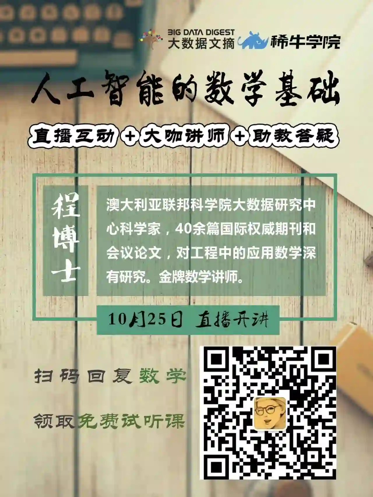 程博士之前的课程,上过的学员都知道,老师知识层面的见解和讲述远超国内很多数学领域的研究者。听得我如痴如醉~
