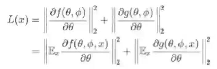 我想再提一下这篇文章中没有讨论的一种方法,但是我认为对于任何想要达成一致优化效果的学者来说都是非常重要的:我们如何通过随机优化和小批量来实现的?虽然本文是在讲一般的应用场景,在对抗生成网络中,f和g实际上是数据点之间的一些回报的平均值,例如,这样对于L我们有如下表达式: