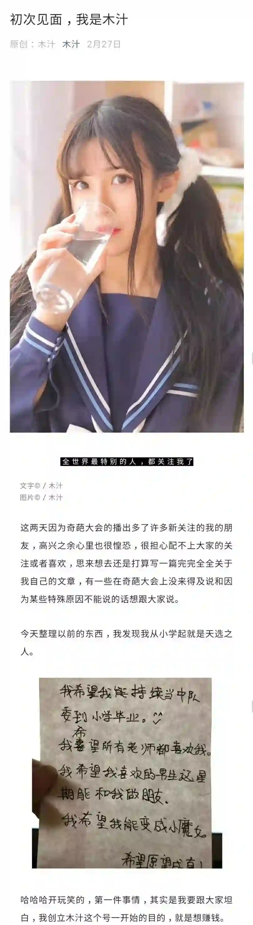 在《初次见面,我是木汁》里,她写到: