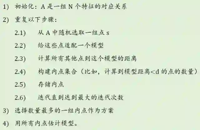 虽然经过了筛选,但是我们也不能保证每一个匹配对都是完全正确的,这其中仍然会存在错误的匹配。在后面的运动估计中,还需要去除错误匹配的方法RANSAC(随机采样一致性)。