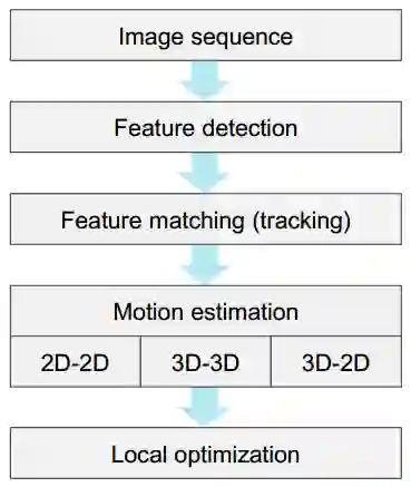 特征点法VO流程 (Davide Scaramuzza and Friedrich Fraundorfe, 2011)
