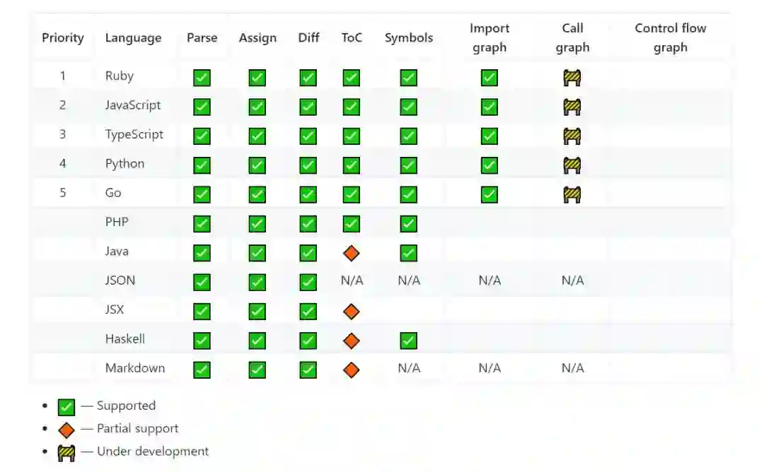 该库由 GitHub Semantic Code team 完成。这支团队主要负责解决分析、解释 GitHub 上公开代码的任务,使用 Haskell 语言。
