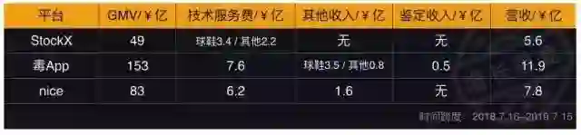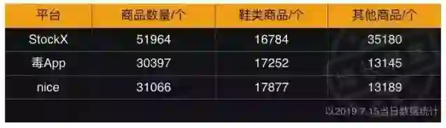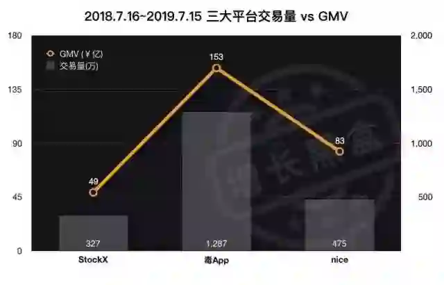 通过对比三大平台从2018年7月至2019年7月近一年的交易量和GMV,我们可以发现毒App的交易量和GMV均是StockX的3倍。