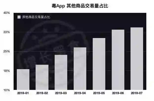 通过分析毒App的其他产品销量占比趋势,我们可以看出毒App平台也开始采取了扩充多品类的策略,从单一的球鞋转卖平台向潮流电商发展。