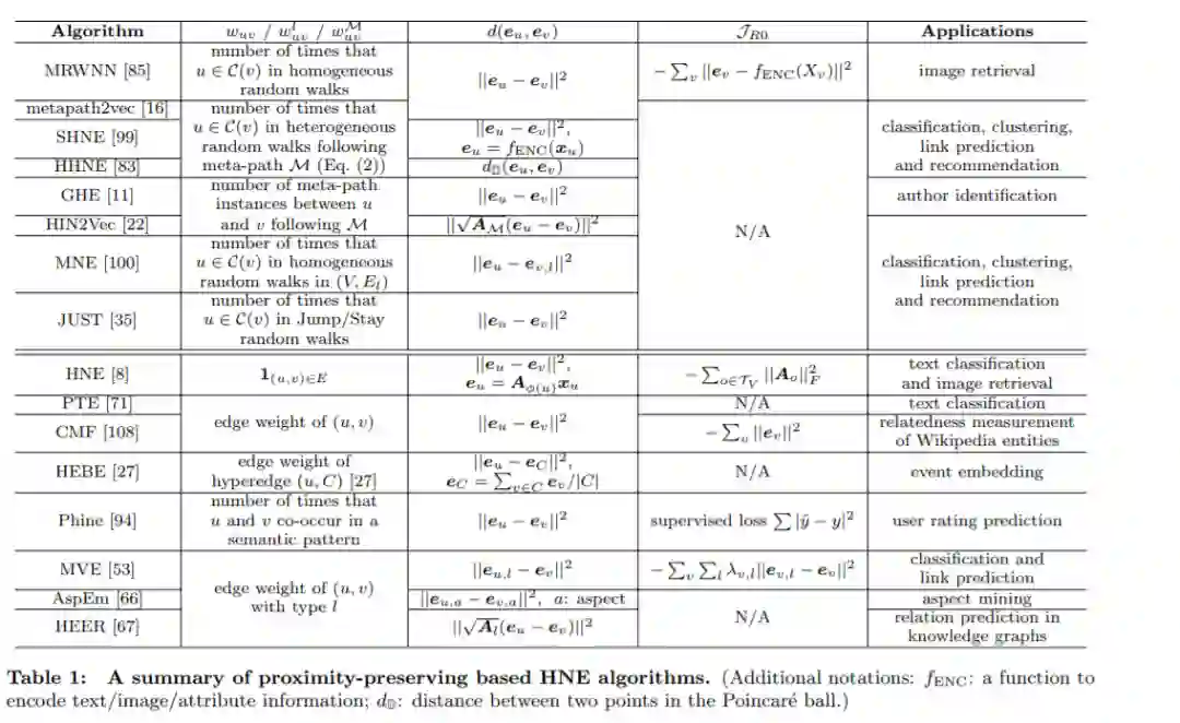 如前所述,网络嵌入的一个基本目标是捕获网络拓扑信息。这可以通过在节点之间保留不同类型的邻近性来实现。在HNE中,有两类主要的接近性保护方法:基于随机步法的方法(灵感来自DeepWalk[49])和基于一阶/二阶接近性的方法(灵感来自LINE[72])。