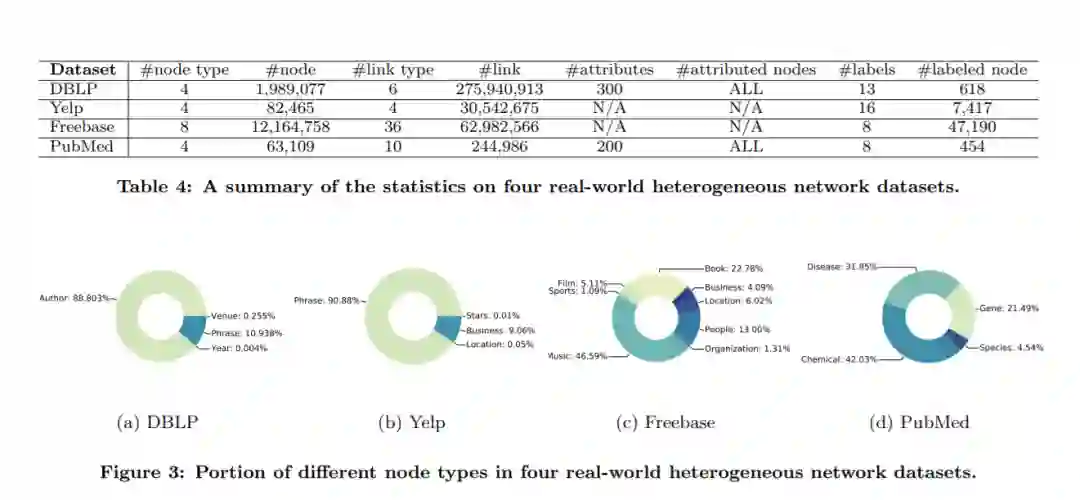 作为第二个贡献,我们通过详尽的数据收集、清理、分析和整理(第4节),特意准备了四个基准的异构网络数据集,具有规模、结构、属性/标签可用性等多种属性。这些不同的数据集,以及一系列不同的网络挖掘任务和评估指标,构成了未来HNE算法的系统而全面的基准资源。