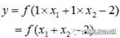 (1)“与(x1∧x2)”:当权值w1=w2=1,阈值θ=2时,有: