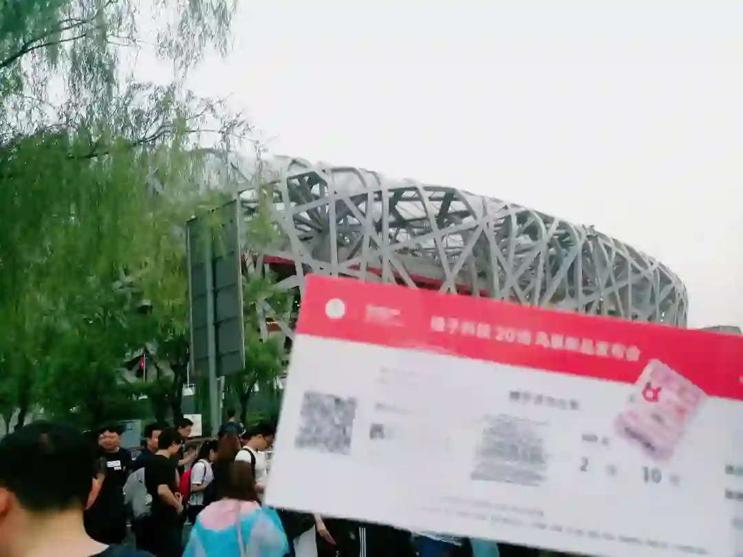 晚6点半,提前一个小时,我们来到了鸟巢附近。虽说知道这次老罗一定也会重新定义7点半,但第一个影响因素是——阵雨。