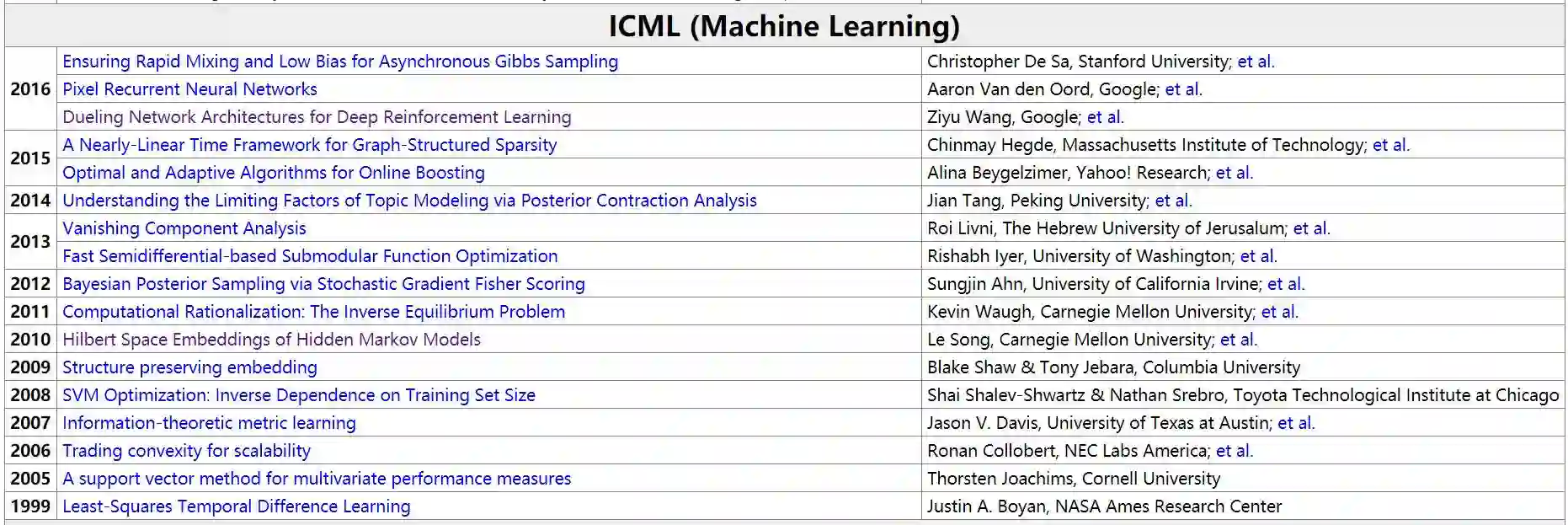 jeffhuang 统计的自 1999 年以来的 ICML 历届最佳论文清单