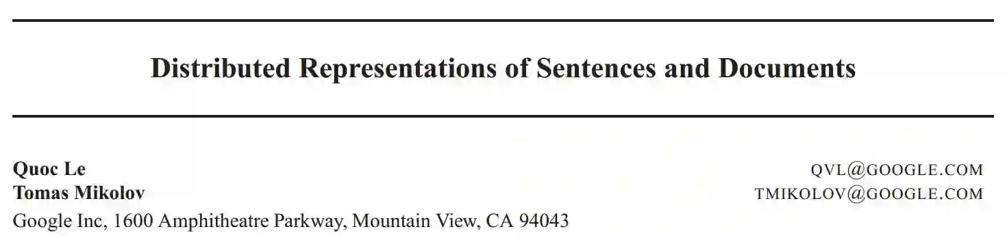 4. 论文标题:语句和文章的分布式表征(被引用次数:1183)