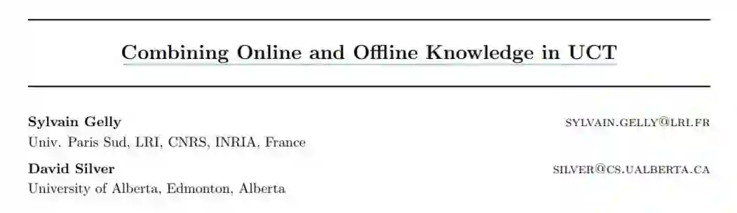 论文摘要:UCT 算法利用基于样本的搜索来学习在线价值函数。针对策略性分布(on-policy distribution),T D(λ) 算法可以离线学习价值函数。我们探讨了三种在 UCT 算法里整合离线和在线价值函数的方法。