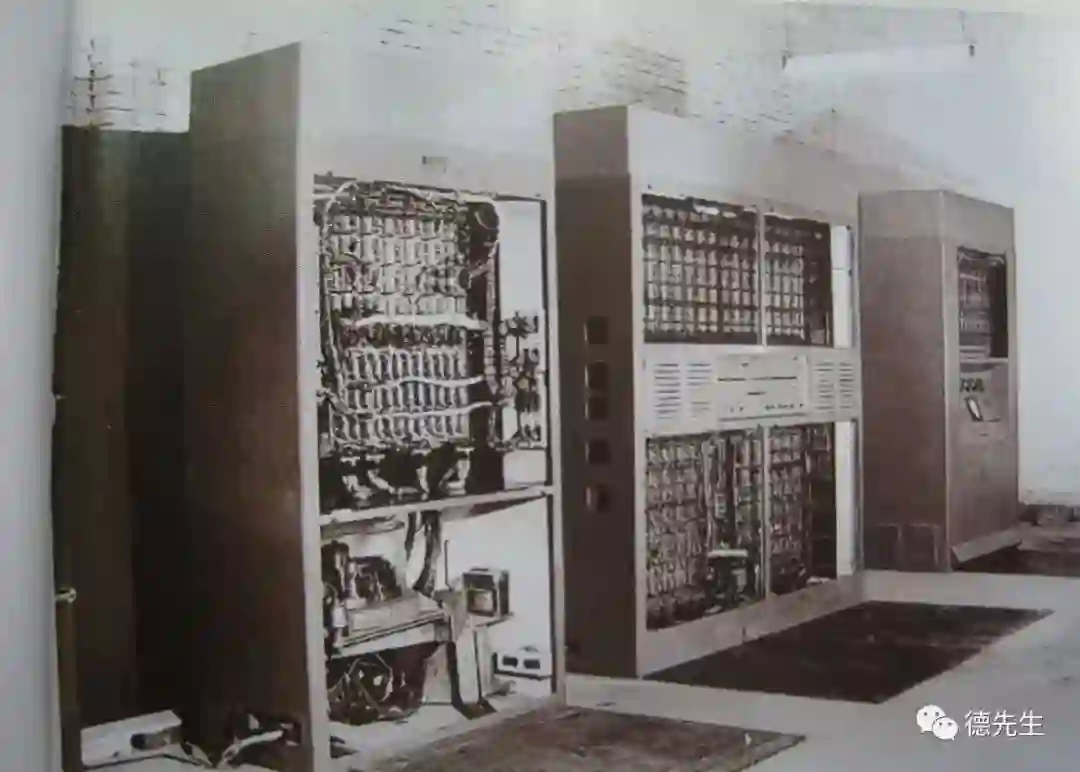 1958 年前,中国人从来没有自己搭建过大型数字电子设备,没有一次使用过这样多的电子管,也没有同时连接这样多的不同功能的插件板,当然也没有一台电子计算机能让人在它前面留影。